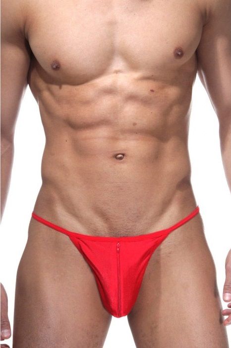 Стринги для мужчин, спереди на трусах расстёгивающаяся молния.